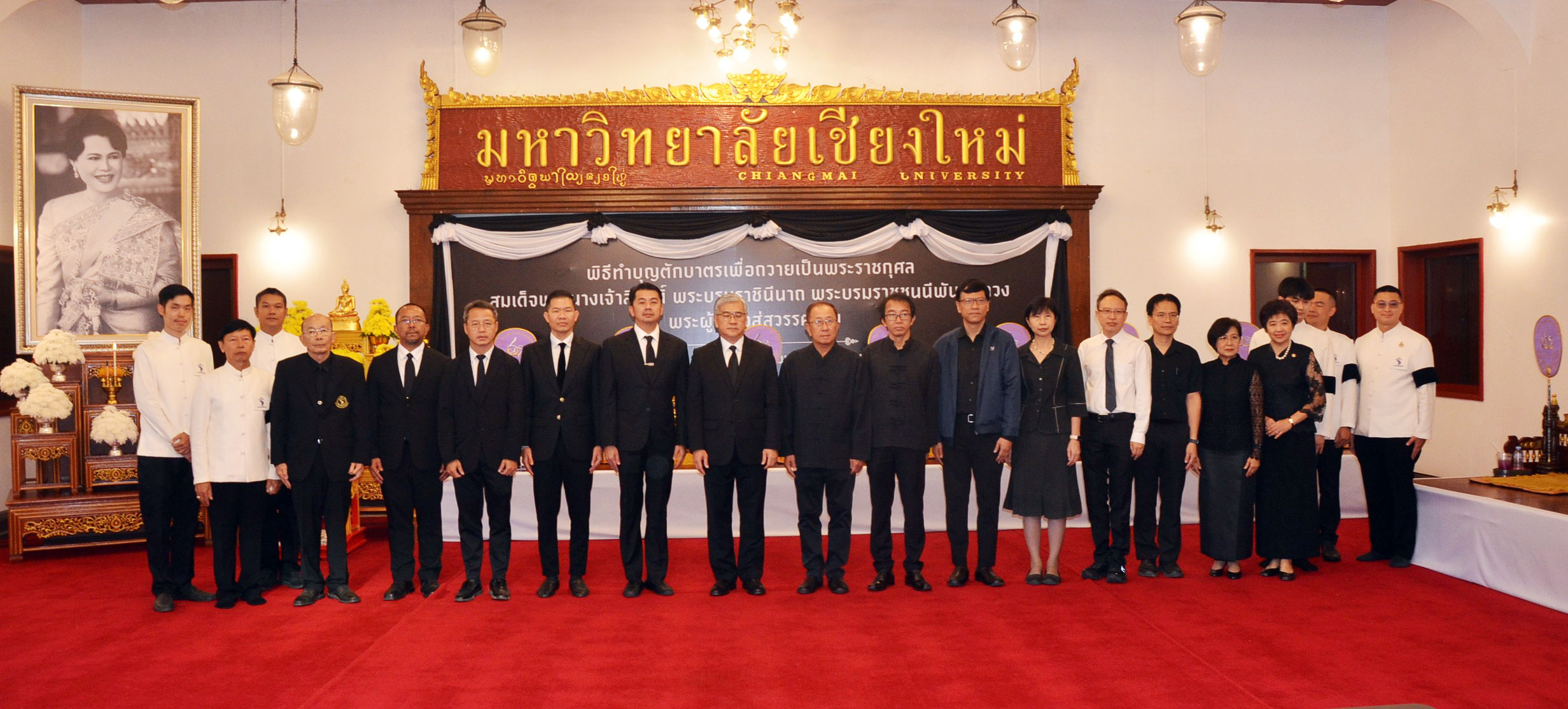 มหาวิทยาลัยเชียงใหม่ จัดพิธีทำบุญตักบาตรเพื่อถวายเป็นพระราชกุศล สมเด็จพระนางเจ้าสิริกิติ์ พระบรมราชินีนาถ พระบรมราชชนนีพันปีหลวง พระผู้เสด็จสู่สวรรคาลัย โดยมีพระครูสมุห์วิษุวัตร วรกิจฺโจ เจ้าอาวาสวัดฝายหิน ประธานสงฆ์ รองศาสตราจารย์ประเสริฐ ฤกษ์เกรียงไกร รองอธิการบดี รักษาการแทนอธิการบดี รองศาสตราจารย์ ดร.ประโยชน์ อุนจะนำ ผู้อำนวยการศูนย์การศึกษามหาวิทยาลัยเชียงใหม่ พร้อมด้วยผู้บริหาร คณาจารย์ ข้าราชการ พนักงาน เจ้าหน้าที่ บุคลากร และนักศึกษามหาวิทยาลัยเชียงใหม่ ร่วมพิธีฯ เมื่อวันที่ 26 ตุลาคม 2568 ณ ศาลาธรรม มหาวิทยาลัยเชียงใหม่