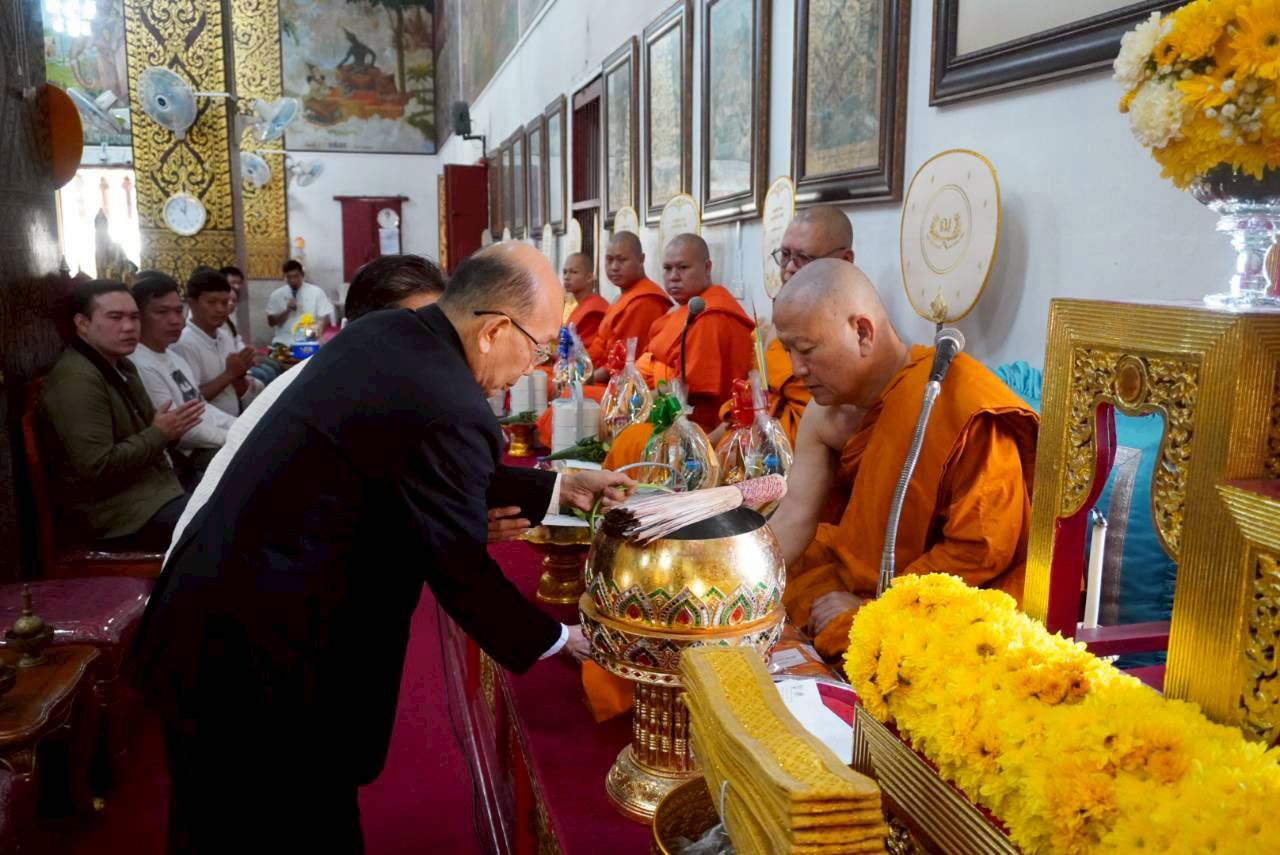 ศูนย์การศึกษามหาวิทยาลัยเชียงใหม่ จัดพิธีทำบุญและพิธีเจริญพระพุทธมนต์สวดชัยมงคลคาถา เนื่องในโอกาสการประกาศตั้งชื่ออ่างเก็บน้ำ “อ่างแก้วทิพย์ธารา” รวมถึงเพื่อความเป็นสิริมงคลแก่ศูนย์ผลิตน้ำประปาของศูนย์การศึกษา โดยมี พระเทพรัตนนายก เจ้าคณะจังหวัดลำพูน และเจ้าอาวาสวัดพระธาตุหริภุญชัย วรมหาวิหาร เป็นประธานในพิธีสวดพุทธมนต์และสวดชัยมงคลคาถา และ รองศาสตราจารย์ ดร.ประโยชน์ อุนจะนำ ผู้อำนวยการศูนย์การศึกษามหาวิทยาลัยเชียงใหม่ เป็นประธานฝ่ายฆราวาส นำบุคลากรศูนย์การศึกษาฯเข้าร่วมพิธี เพื่อความเป็นสิริมงคลแก่บุคลากรและหน่วยงาน เมื่อวันที่ 5 ธันวาคม 2568 ณ วิหารหลวง วัดพระธาตุหริภุญชัย วรมหาวิหาร อำเภอเมือง จังหวัดลำพูน