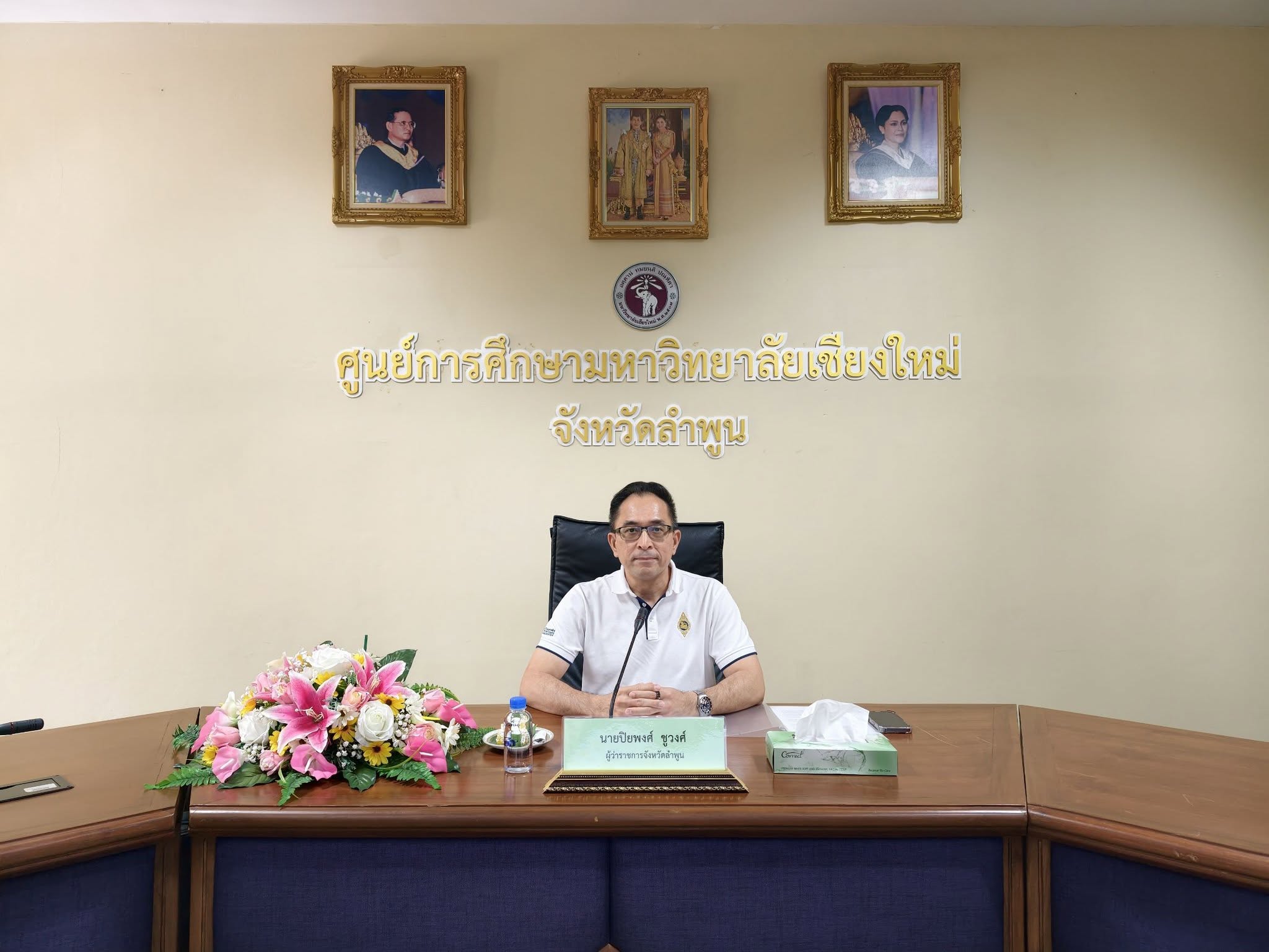 รองศาสตราจารย์ ดร.ประโยชน์ อุนจะนำ ผู้อำนวยการศูนย์การศึกษามหาวิทยาลัยเชียงใหม่ ให้การต้อนรับ นายปิยพงศ์ ชูวงศ์ ผู้ว่าราชการจังหวัดลำพูน ในโอกาสเดินทางมาเป็นประธานการประชุมคณะกรรมการศูนย์อำนวยการความปลอดภัยทางถนนจังหวัดลำพูน (ศปถ.จ.ลพ) ครั้งที่ 2/2569