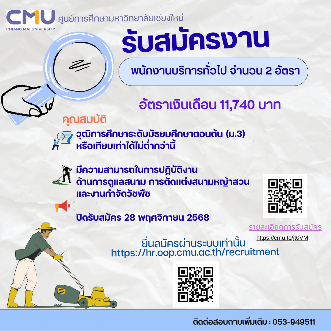 รับสมัครงานตำแหน่ง พนักงานบริการทั่วไป หมดเขต 28 พ.ย. 68