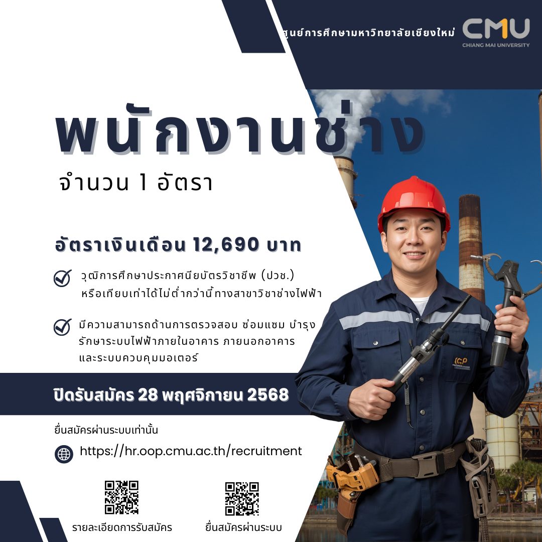 ศูนย์การศึกษาฯ รับสมัครพนักงานช่าง 2 อัตรา